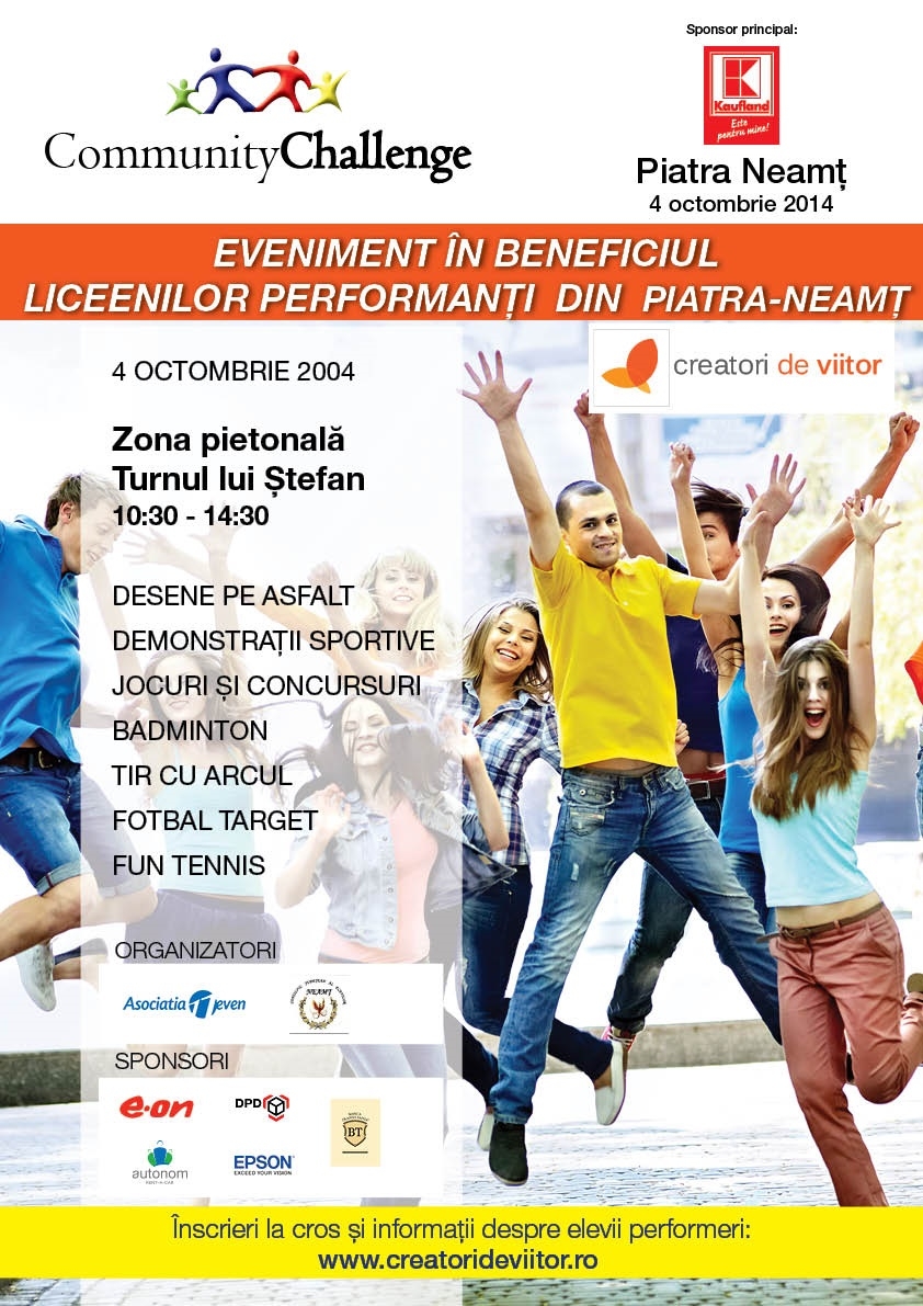 Evenimentele Community Challenge sunt organizate cu sprijinul Kaufland România, iar susținătorul principal al proiectului Creatori de viitor este Banca Transilvania. În Piatra Neamț evenimentul se va desfășura cu sprijinul Primăriei și a Consiliului Local și a Consiliului Județean al Elevilor.