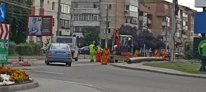 Astfel de ambuteiaje în zona acestui giratoriu se vor mai forma până în toamnă, pentru că avizele primite pentru execuţie sunt până în octombrie.