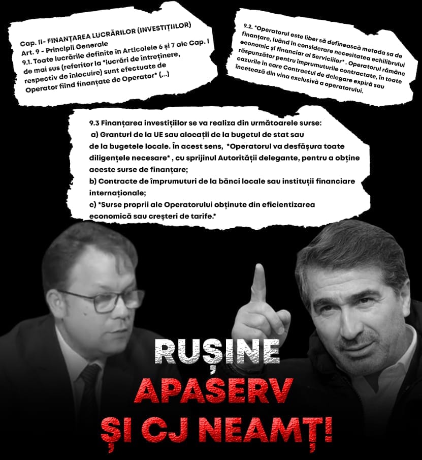 Faptul că APASERV sfidează contractul încheiat și îi privează pe romașcani de condițiile minime de trai în anul 2022, lăsându-ne fără apă curentă, în prag de iarnă, este o dovadă că nu există limită a lipsei de respect pe care această companie și, implicit, Consiliul Județețean condus de PSD, o aduc municipiului Roman.