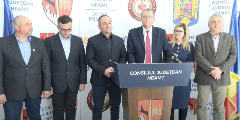 Share Facebook Twitter LinkedIn Pinterest Email Copy Link Conferința de presa după alegerea noii conduceri a Consiliului Județean Neamț daniel harpa Dulamă Ion Asaftei Mădălina Ciubotaru