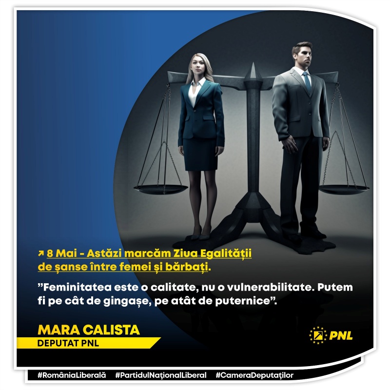 De aceea îmi doresc ca nici alții, dar nici noi, femeile, să nu ne punem piedici între noi. Indiferent de sex, merităm șanse egale. Merităm să fim plătite pentru munca noastră, fără să se țină cont de sex, ci de competențe și aptitudini. Merităm să fim în funcție de decizie pentru că reprezentăm peste 51% din populația României.