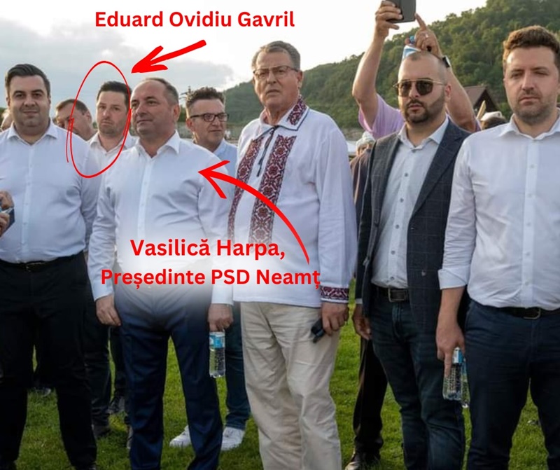 Eduard Ovidiu Gavril este prezent frecvent în fotografiile de grup ale social democraților nemțeni, ocupând un loc în rândul din spate și părând mereu confuz față de rolul pe care îl are acolo. Fratele șoferului lui Ionel Arsene, Gavril a devenit omul de bază al președintelui PSD Neamț, Vasilică Harpa, care îi încredințează treburile de casă ale partidului, de la lipit afișe, la prezența discretă la unele evenimente politice ale PSD.