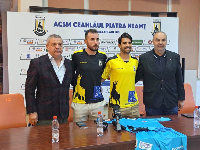 Înaintea meciului cu Chindia Târgoviște din etapa a VI-a a Ligii secunde, echipa CSM Ceahlăul Piatra Neamț a organizat o conferință de presă în care a prezentat două noi achiziții. Este vorba despre doi atacanți sud-americani, dar care ambii au și cetățenie italiană, peruanul Pier Larrauri și uruguayanul Sergio Cortelezzi. (Bogdan Călian)