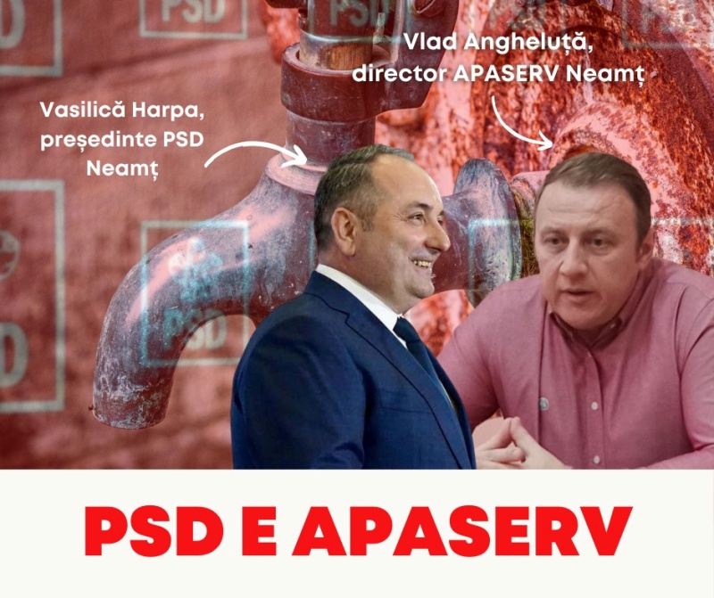 Concret, în baza unui proiect de hotărâre iniţiat de preşedintele CJ Neamţ, Ion Asaftei (reprezentant al PSD Neamţ), se propune acordarea unui ajutor de minimis în valoare de aproape 1,5 milioane (300.000 euro) companiei APA SERV condusă de pesedistul Vlad Angheluţă, susţinut în funcţie de bunul său prieten şi preşedinte al PSD Neamţ, Daniel Vasilică Harpa.