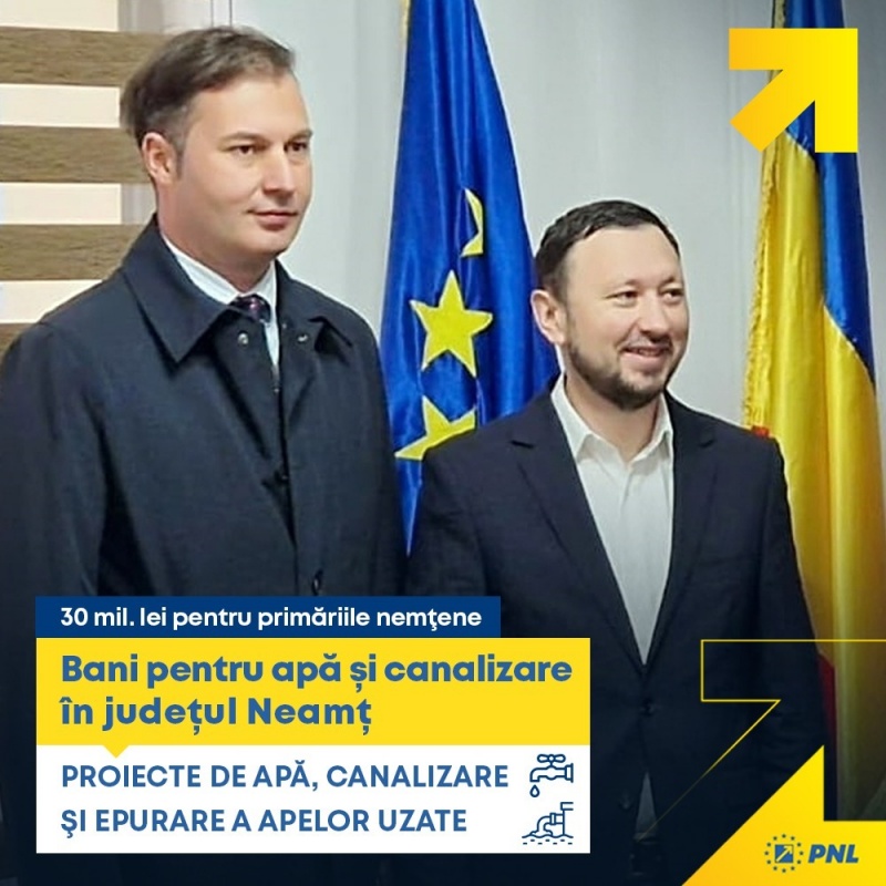 „Vreau să aduc o veste bună pentru toţi primarii din judeţul Neamţ pentru că a fost lansat Ghidul de Finanţare a Programului ce vizează sistemele de apă, canalizare şi epurare a apelor uzate. Sunt finanţări importante pe care Ministerului Mediului, Apelor şi Pădurilor condus de liberalul Mircea Fechet le pune la dispoziţia tuturor primăriilor, prin intermediul Administraţiei Fondului pentru Mediu. Îi mulţumesc domnului ministru Mircea Fechet care, aşa cum a promis la sfârşitul anului trecut când a fost prezent în judeţul Neamţ, vine în sprijinul comunităţilor, cu acest program deosebit de important. Îi îndemn pe toţi primarii din judeţul Neamţ să consulte Ghidul de Finanţare şi să depună proiecte astfel încât să acceseze aceste fonduri nerambursabile. Este un program 100% liberal pentru că noi, Partidul Naţional Liberal credem cu tărie că dezvoltarea vine odată cu investiţii consistente în comunităţi. Ca preşedinte al filialei PNL Neamţ şi ca membru al Guvernului României vreau să transmit un mesaj ferm de susţinere a tuturor primarilor care doresc să dezvolte comunităţile pe care le reprezintă şi să îi asigur de tot sprijinul meu necondiţionat”, a declarat secretarul de stat George Lazăr, preşedintele PNL Neamţ.