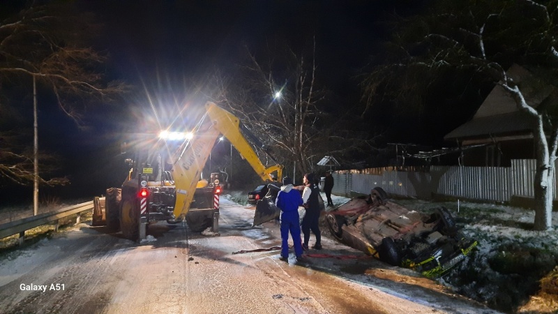 Un autoturism a derapat din cauza gheții depusă pe carosabil în această zonă, în comuna Războieni, șoferul a pierdut controlul direcției și s-a răsturnat în șanțul betonat de la marginea drumului. Din fericire, bărbatul, care se afla singur în autoturism, nu a suferit traumatisme. SVSU Războieni a intervenit la fața locului și a reușit să repună autoturismul pe roți, care părea că nu ar fi suferit pagube majore.