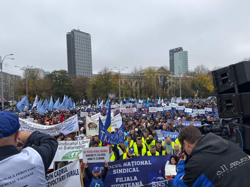Astăzi, 12 noiembrie, Blocul Național Sindical a organizat în Piața Victoriei din București un protest, urmat de un marș până la Piața Constituției.