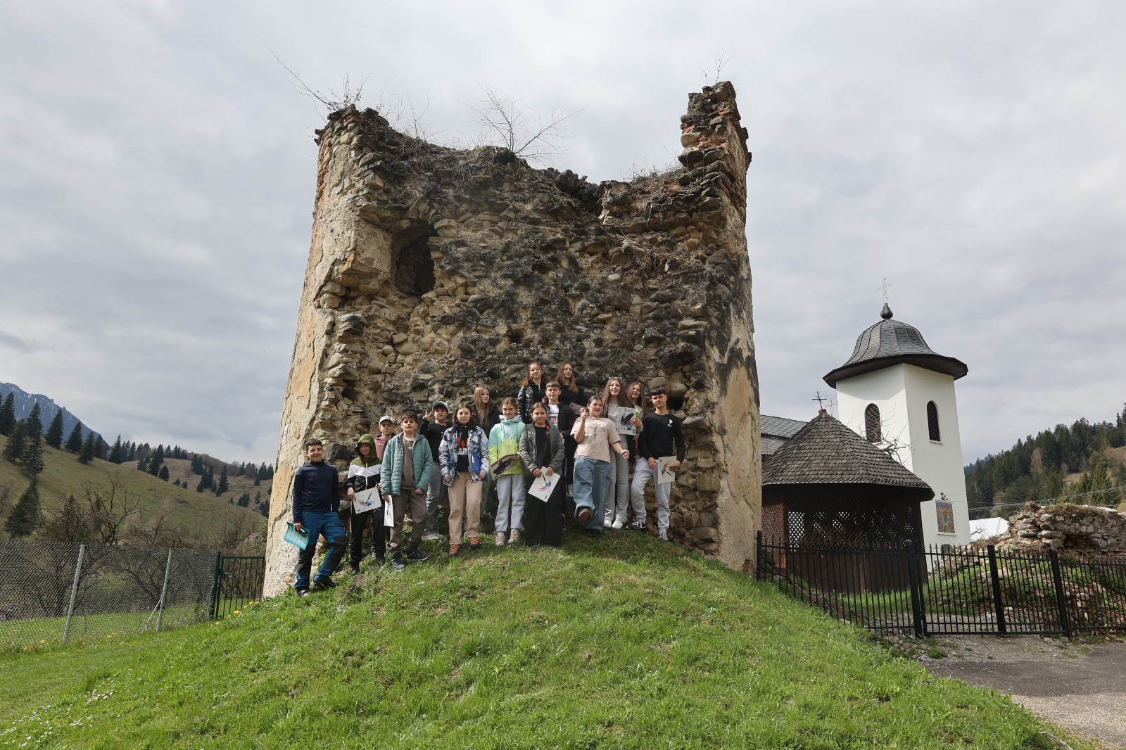 Au realizat primele schițe în creion – cu biserica, turnurile și zidurile. După un drum reconfortant pe traseul numit Axial, s-au oprit din nou pentru o schiță la Piatra Corbiței, stânca ce l-a inspirat pe Alecu Russo în 1838, dând naștere uneia dintre cele mai frumoase povești ale munților Neamțului.