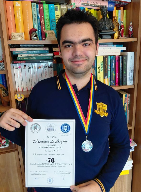 Dintre elevii nemţeni, Matei Daniel Dieaconu, cunoscut citiorilor revistei noastre, a fost recompensat cu „Medalia de argint” şi a fost printre cei selectaţi pentru proba de baraj pentru lotul naţional ce s-a desfăşurat vineri şi aşteaptă cu speranţă rezultatele. Matei Dieaconu este elev al Colegiului Naţional „Petru Rareş”, îndrumat de profesorul Adrian Sandovici.